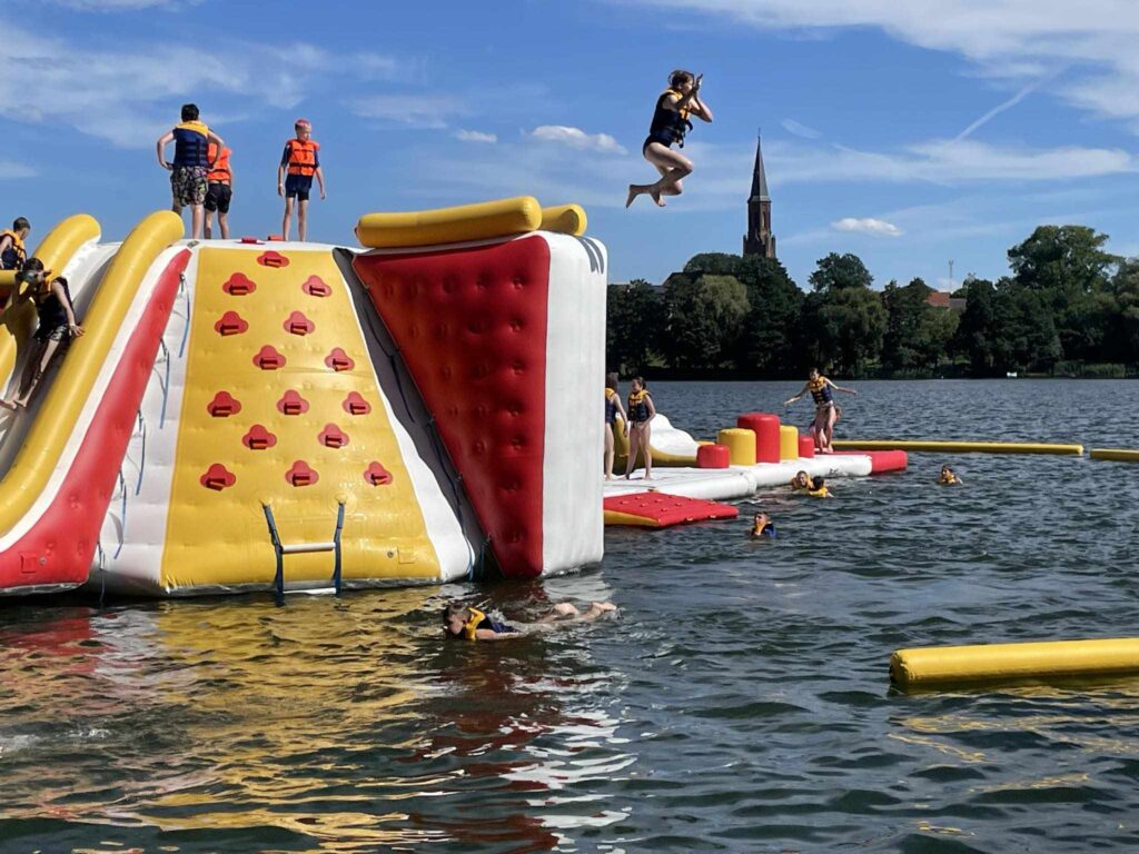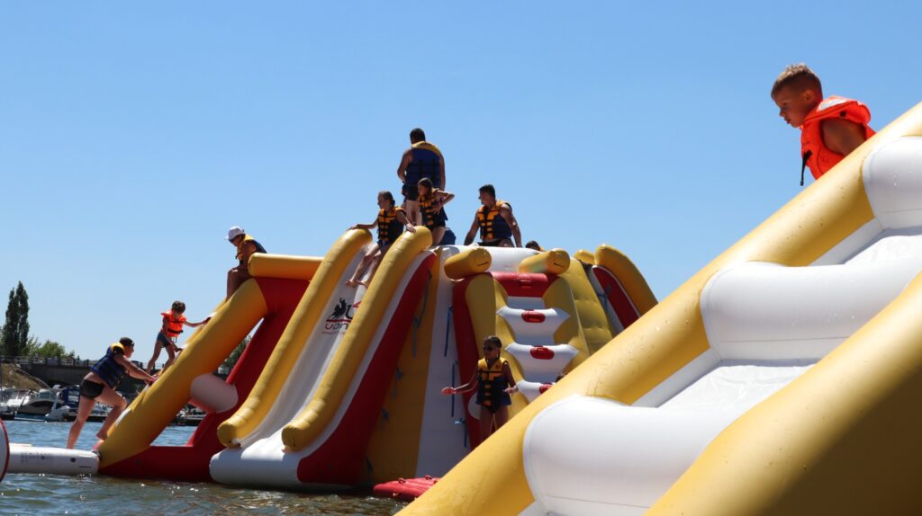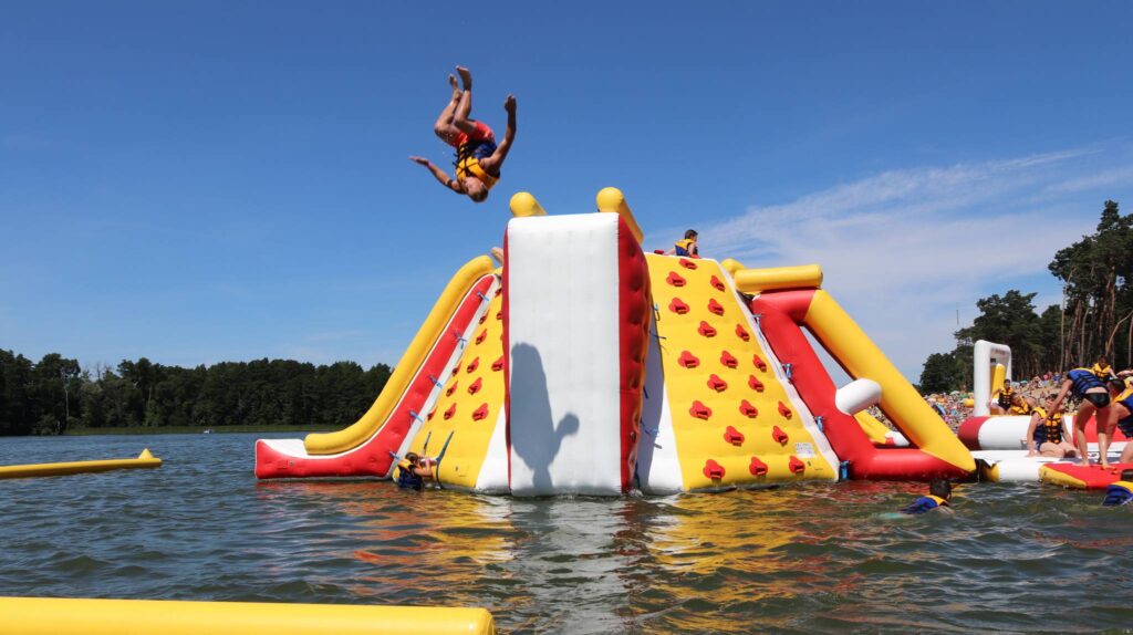 Trampoliny, zjeżdżalnie, chill w cieniu i błękitna woda – idealne miejsce na rodzinny dzień pełen wrażeń.